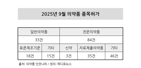 2025 9월 허가된 의약품 중 70% 이상이 전문의약품으로 확인됐다.