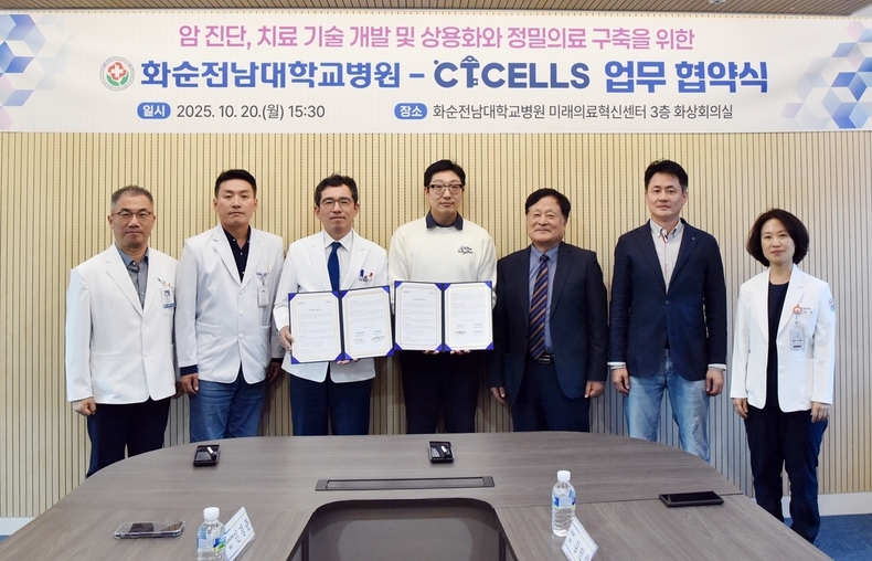 화순전남대학교병원은 지난 20일 미래의료혁신센터 3층 화상회의실에서 암 진단·치료 기술 개발 전문기업 씨티셀즈와 업무협약을 체결하고 정밀 의료 상용화를 위한 협력체계를 구축했다고 밝혔다.