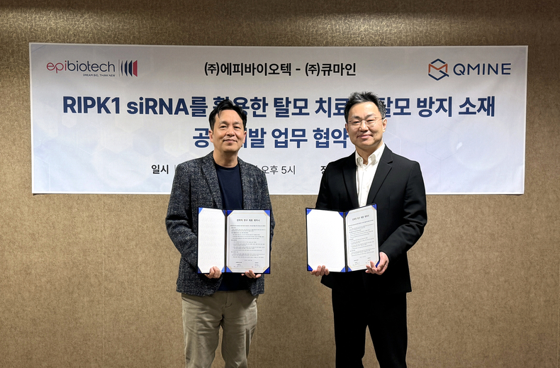 에피바이오텍(대표 성종혁)은 RNA 치료제 설계 및 개발 플랫폼 기업인 큐마인(대표 김연준)과 RIPK1 siRNA 기반 탈모 치료제 및 탈모 방지 소재 공동개발을 위한 업무협약(MOU)을 체결했다고 26일 밝혔다.
