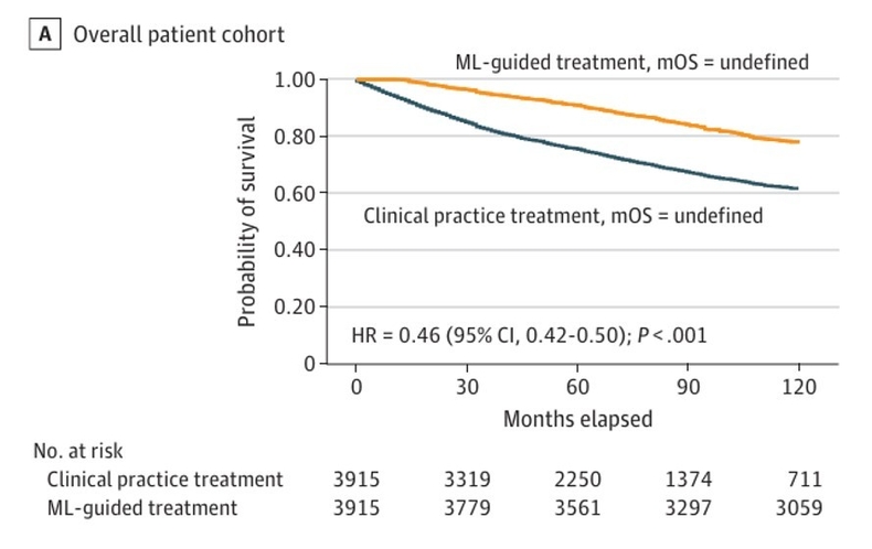 모의 분석 결과 기존 임상적 결정과 비교하면 모델의 권고에 따른 치료는 사망 위험을 54% 감소시키는 것으로 나타났으며, 결과의 통계적 유의성 역시 매우 높았다(p<0.001).