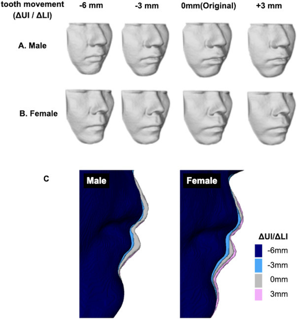 연구팀은 또한 AI 기반 3D 얼굴 시뮬레이션을 활용해 치아 이동량(±3~6mm)에 따른 연조직 변화를 예측했다. 분석 결과, 여성은 남성보다 치아 이동량에 비례하여 더 광범위하고 뚜렷한 연조직 변화를 보였다(P<0.05). 특히 입술 및 뺨 부위의 후방 이동 및 볼륨 감소가 여성에게서 두드러지게 나타났다. 이는 여성의 연조직이 교정 치료에 더 반응성이 높음을 시사한다.