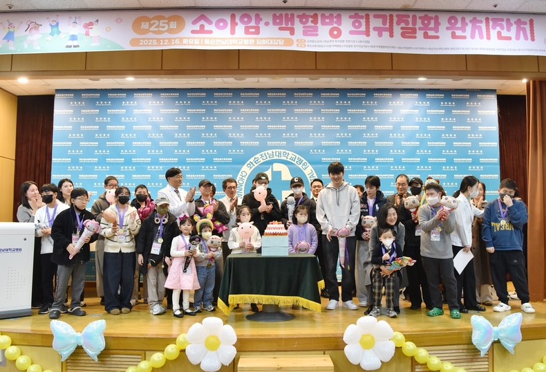 화순전남대학교병원은 길고 힘들었던 치료과정을 극복한 아이들의 용기와 가족들의 헌신을 기념하는 ‘제25회 소아암·백혈병 희귀질환 완치잔치’를 지난 16일 병원 여미홀에서 개최했다고 밝혔다.