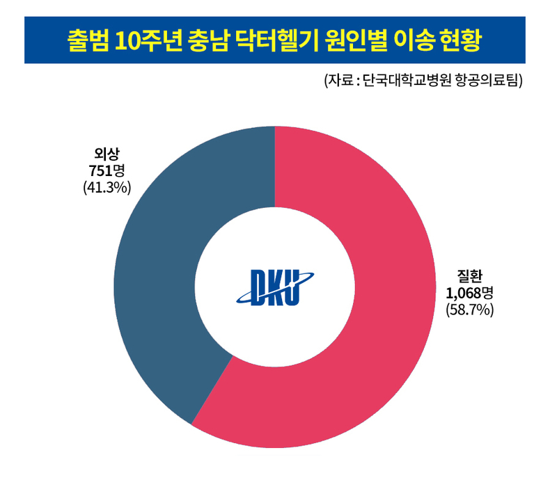 단국대병원이 운영하는 ‘충남 응급의료 전용헬기(이하 충남 닥터헬기)’가 출범 10주년을 맞았다고 28일 밝혔다.