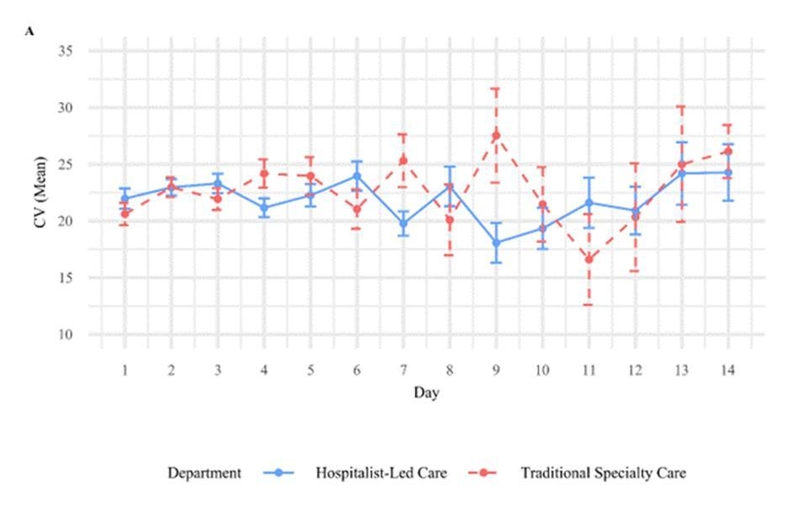 그간 입원전담전문의 제도의 효과를 평가한 연구는 주로 재원 기간, 의료비, 환자 만족도와 같은 행정‧운영적 지표에 초점을 맞춰왔다. 이에 연구팀은 입원 환자의 실제 치료 경과를 반영하는 임상 지표로서 혈당 변동성을 분석해, 입원전담전문의 진료의 임상적 효과를 규명하고자 했다.