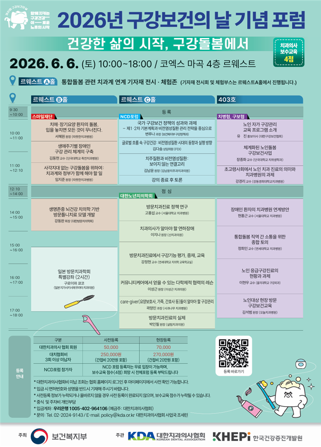 또한 단순한 일회성 행사가 아닌, 구강보건의 중요성과 치과계의 역할을 체계적으로 알리고 정책·임상·현장을 연결하는 지속적인 플랫폼으로 운영, 구강보건 분야의 정책적 기반과 사회적 인식을 점진적으로 확대해 나갈 예정이다.