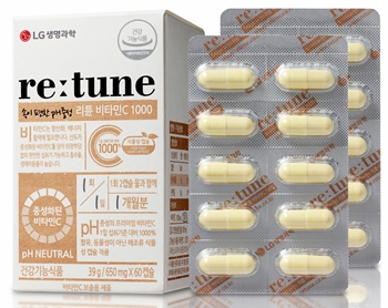 LG생명과학 건강기능식품 브랜드 리튠(re:tune)이 산도(pH)를 중성화해 섭취 후 속이 편한 프리미엄 비타민C를 함유한 건강기능식품 '리튠 비타민C 1000'을 출시했다.