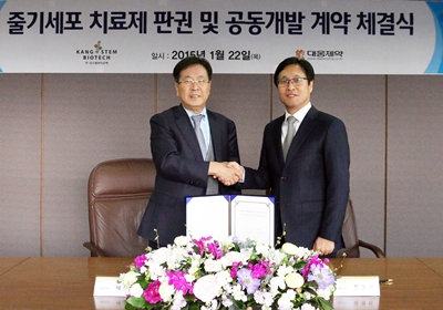 대웅제약(대표 이종욱)은 줄기세포전문 바이오벤처 강스템바이오텍(대표 강경선)과 제대혈 유래 동종줄기세포치료제인 '퓨어스템'의 국내외 판권 및 공동개발 계약을 22일 체결했다고 26일 밝혔다.