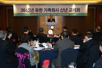 유한양행은 지난 2월 13일 저녁 소공동 롯데호텔 에메랄드룸에서 2015년 유한 가족회사 신년교례회를 개최했다.