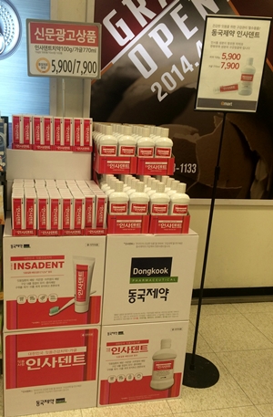 ‘인사덴트’ 치약과 가글은 이마트와 공동 기획하여 현재 이마트 전국매장에서 판매 중이며, 4월중에 GS홈쇼핑에서도 판매될 예정이다.