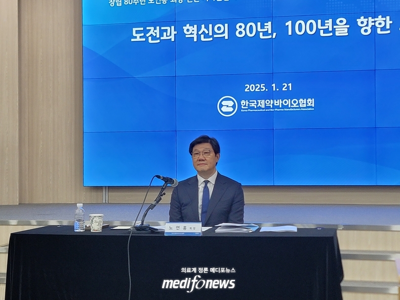 한국제약바이오협회가 올해 창립 80주년을 맞은 가운데, 노연홍 회장이 ‘도전과 혁신의 80년, 100년을 향한 도약’이라는 주제로 21일 신년 기자간담회를 개최했다.