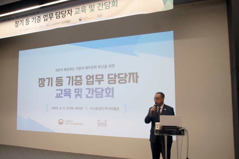 한국장기조직기증원(원장 이삼열)과 국립장기조직혈액관리원(원장 장호연)은 3월 21일(금), 4월 11일(금) 양일간 ‘장기등 기증 업무 담당자 교육 및 간담회’를 부산 유라시아 플랫폼, 서울 서소문성지 역사박물관에서 각각 개최했다.