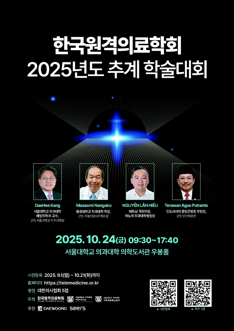 아시아 각국의 원격의료 전문가들이 참여하는 ‘아시아 원격의료학회(Asian Telemedicine Society, ATS)’가 공식 출범한다. 초대 회장으로는 서울대학교 의과대학 예방의학교실 강대희 교수가 선임되며, 창립 기념 행사로 10월 24일 서울대학교 의과대학 의학도서관 우봉홀에서 ‘ATS 2025 아시아 원격의료학회 컨퍼런스’가 개최된다.