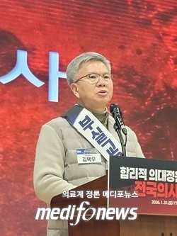 김 회장은 지역별, 전문과목별 정밀한 추계 없이 총량 중심의 탁상공론으로 도출된 결과는 결코 신뢰받을 수 없다고도 지적했다. 교육부의 현장조사는 사실상 담당자 면담수준이었고, 의대정원으로 인한 천문학적인 건보재정 파탄에 대한 고통을 정부가 함구하고 있다고 꼬집었다.