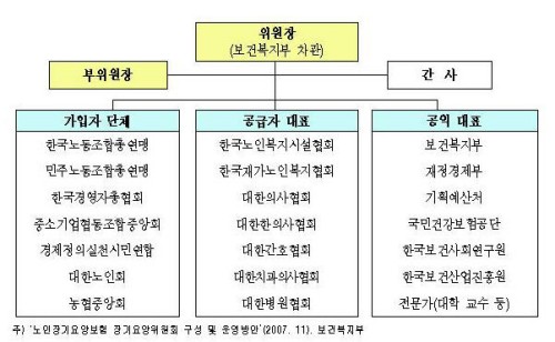 보건복지부는 현재 노인장기요양보험법에 따른 장기요양위원회을 오는 29일까지 구성하겠다는 계획을 밝히며 제 단체와 기관에 위원 추천을 요청한바 있다. 장기요양위원회 운영을 통해 가입자, 공급자 등 이해관계자의 참여하에 보험료율과 급여에 관한 사항을 심의해 제도의 수용성과 절차적 정당성을 제고하겠다는 입장이다.