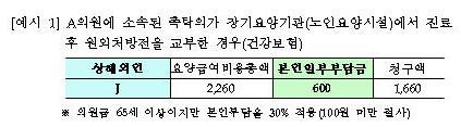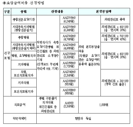 처방의료기관의 명세서 산정의 경우 △원외처방이 이루어진 경우에 한해 진찰료 중 외래관리료만 산정(처방전 내역 기재) △의원급의 경우 본인부담금은 65세이상이지만 30%로 산정한다.