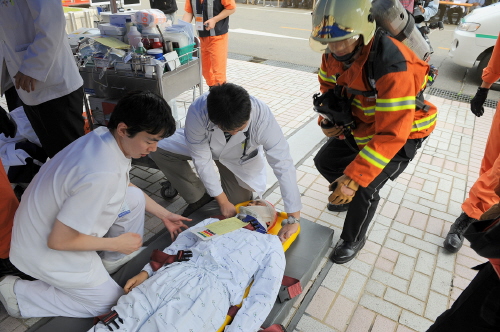 박창일 의료원장은 “의료원에서 재난 대비 훈련을 실시하여 재난사고 발생시 신속한 자체 수습 및 복구능력 향상에 많은 도움이 되었다”며 훈련에 참가한 여러 기관들 간의 긴밀한 공조가 서대문구 주민들의 건강과 안녕을 지키는 중요한 요소라고 강조했다.