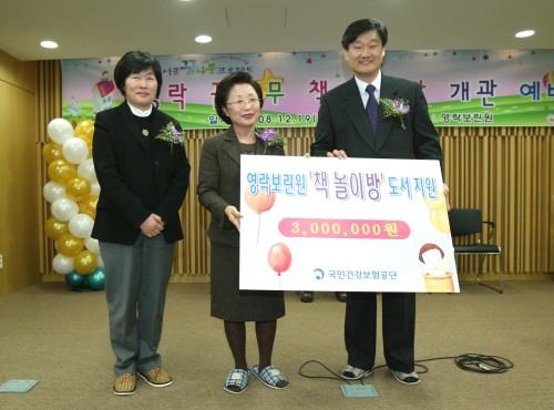 국민건강보험공단(이사장 정형근)은 추운 겨울을 맞아 지난 19일 공단 사회봉사단과 자매결연을 맺은 어린이, 청소년 보호시설 영락보린원의 ‘책 놀이방’ 개관식에 참석했다.