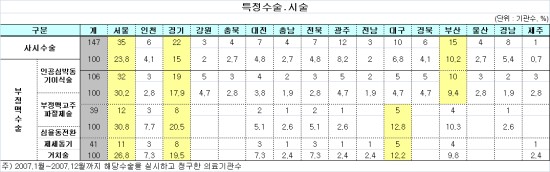 이에 심평원은 2007년에 해당 수술(장기이식술은 2006~2007년)을 실시한 전체병원의 명단을 한눈에 알기 쉽도록 공개해, 이들 병원 중에서 선택할 수 있도록 했다.