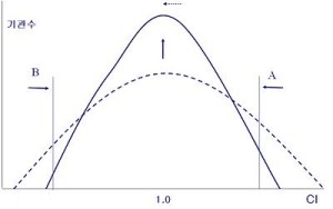 사보노조는 “종합관리제는 그림과 같이 고가도지표의 분포를 집중시키는 효과가 발생한다”며 “고가도지표(CI)가 높은 기관이 평균에 가까워져 진료비절감표(그림의 A부분)가 발생하지만 고가도지표가 낮은 기관이 평균에 가까워지는 경우 진료비증가효과(그림의 B부분)가 발생한다”고 설명했다.