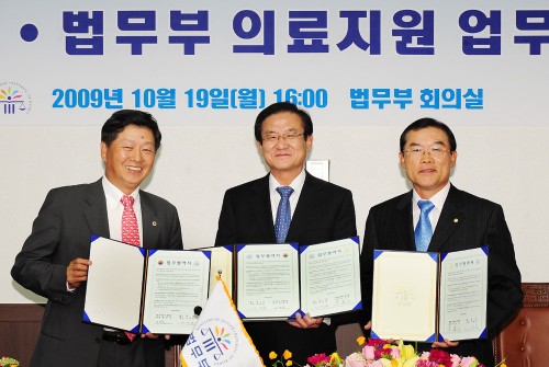 대한의사협회(회장 경만호)와 법무부(장관 이귀남)는 19일 오후 4시 법무부 대회의실에서 재한 외국인의 건강한 사회정착 지원을 위한 업무협약을 체결했다.