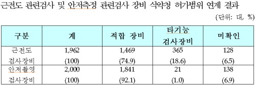 또한, 안저측정 관련검사 장비는 전체 장비(2,000대)중 모델명이 확인되지 않아 허가범위를 확인할 수 없는 장비도 6.9%(138대)에 달하고 있었다.