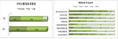 심평원은 “설문조사 결과 종합상담서비스에 대한 유용도는 방문서비스의 경우 100% 유용도가 있는 것으로 나타났다”면서도 “그러나 문서서비스의 경우 89% 유용한 것으로 나타나 방문서비스를 통한 자료설명 및 의견교환 등이 요양기관 사전안내에 대한 효과가 컸다”고 말했다.