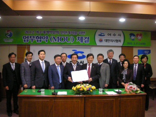 대한의사협회(회장 경만호)와 여수시(시장 오현섭)가 2012 여수세계박람회의 안전하고 성공적인 개최를 위해 17일 업무협약을 체결했다.