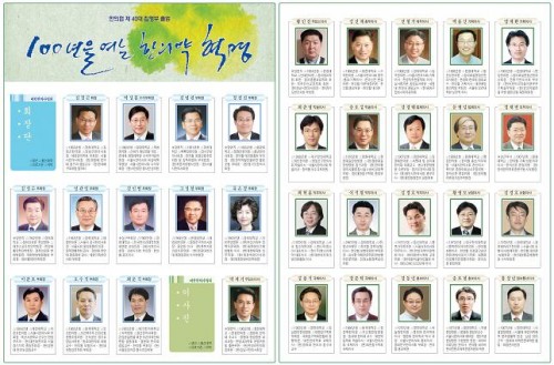 김정곤 회장·박상흠 수석부회장은 지난 제55회 정기대의원총회에서 위임된 신임 임원진 구성과 관련해 부회장 10인, 이사진 21인(무임소 이사 2인 포함)의 명단을 확정, 발표했다.