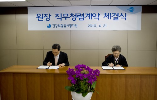 건강보험심사평가원(원장 강윤구)은 21일 7대 신임원장에 대한 직무청렴계약을 체결하고 심사평가원의 부패방지와 깨끗한 공직풍토 조성을 위해 노력할 것을 다짐했다고 밝혔다.