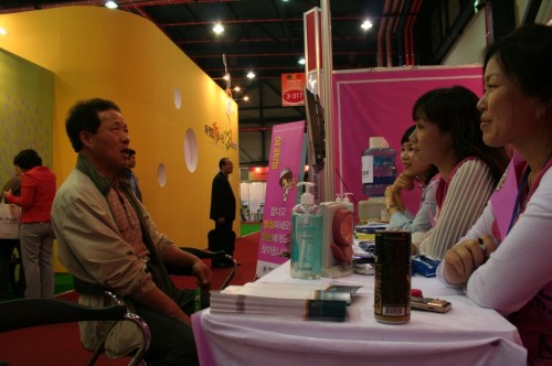 분홍색을 주테마로 꾸며진 홍보부스에서는 상담결과에 따라 요실금패드, 요실금팬티, 욕창방지용 크림 등 테나제품을 무료로 증정해 주고 있다.