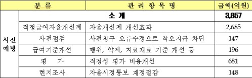 심사조정 등 심사 절감액 내용을 살펴보면 ▲사전예방 활동: 3857억원 ▲심사조정: 3215억원 ▲사후관리: 1062억원 등 총 8천억원 이상을 절감했다.