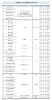 식품의약품안전처 의약품안전나라에 따르면 2025년 11월 총 59건의 의약품 특허등재가 이뤄진 가운데, 한국화이자제약이 총 24건으로 가장 많은 특허 등재에 성공했다. 특히 화이자의 폐렴구균 백신인 프리베나20는 총 8건의 특허가 등재됐다. 이 중 3건은 2026년 3월 31일에, 1건은 2027년 4월 19일에, 다른 한 건은 203년 8월 12일에, 나머지 3건은 2035년 1월 15일에 특허 등재 존속기간이 만료될 예정이다. 건선, 크론병 등 다양한 적응증을 보유한 한국얀센의 ‘트렘피어정맥주사(성분명 구셀쿠맙)’도 특허가 1건 등재됐는데 오는 2029년 3월 16일에 만료될 예정이다. 한국아스텔라스의 위암 치료제인 ‘빌로이주100mg(성분명 졸베툭시맙)’는 9건의 특허를 등재시켰다. 2030년 3월 13일에 만료되는 특허와 2031년 8월 2일에 만료되는 특허 각 1건, 2031년 8월 20일에 만료되는 특허가 4건, 2033년 5월 21일, 2033년 11월 30일, 2035년 1월 2일에 만료되는 특허가 각 1건씩으로 총 9건의 특허가 존재한다. 한국로슈의 유방암 치료제 ‘이토베비정(성문명 이나볼리십)’ 3mg, 9mg도 각각 3건씩 특허에 등재됐다