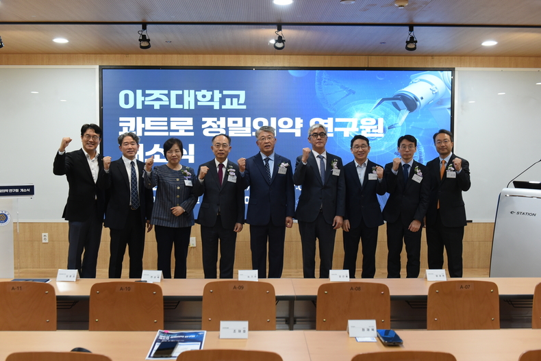 아주대학교는 지난 10월 23일 오후 2시 30분, 혜강관 209호에서 ‘콰트로 정밀의약 연구원(Quattro Precision Therapeutics Institute, 이하 QPT)’ 개소식을 개최했다고 28일 밝혔다. 이번 개소식은 AI(인공지능)와 데이터 기반 정밀의학 및 첨단 융복합기술을 선도할 대학 부설 연구 거점의 출범을 알리는 자리로 마련됐다.