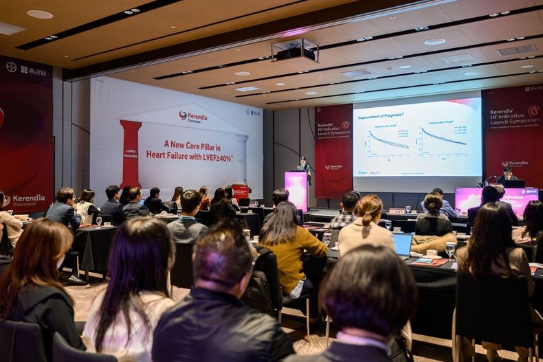 덧붙여 박 교수는 “FINEARTS-HF연구 결과에 따르면, 케렌디아는 심혈관계 질환으로 인한 사망과 심부전으로 인한 입원 및 심부전 관련 긴급 병원 방문을 포함한 전체 심부전 사건을 16% 유의하게 감소시켰고, 28일부터 나타난 효과가 연구가 진행되는 3년 동안 지속됐다. 나이, 체질량지수(BMI), 당뇨병, 추정사구체여과율(eGFR) 등 17개의 하위그룹 분석에서 일관된 혜택을 보여 다양한 환자에서의 활용 가능성을 확인했다“고 강조했다.