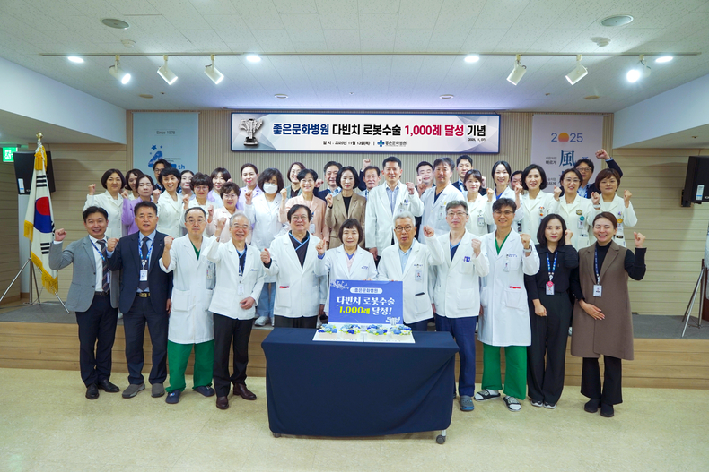 좋은문화병원이 13일 다빈치 로봇수술 1,000례를 달성해 기념식을 가졌다고 밝혔다. 2023년 4월 다빈치 수술로봇 도입 후 1년 7개월 만에 이룬 성과다.