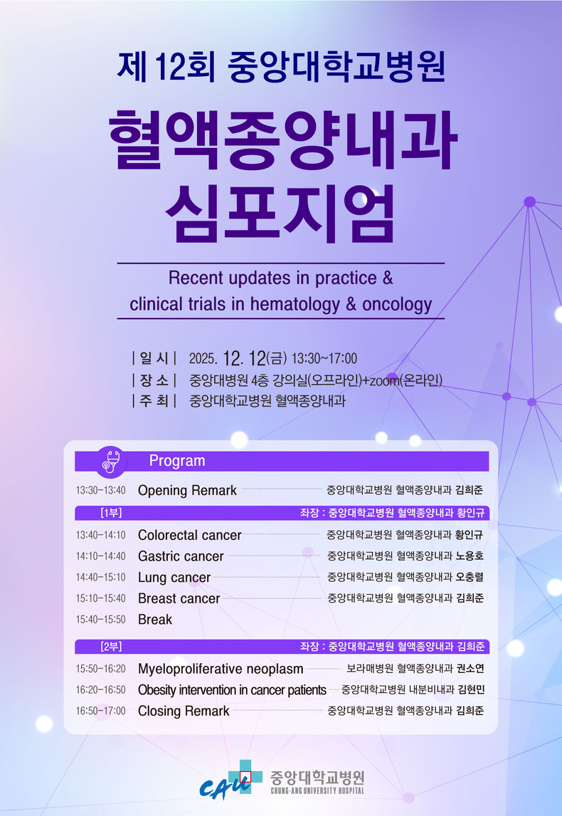 중앙대병원, 혈액종양내과 심포지엄(12/12)