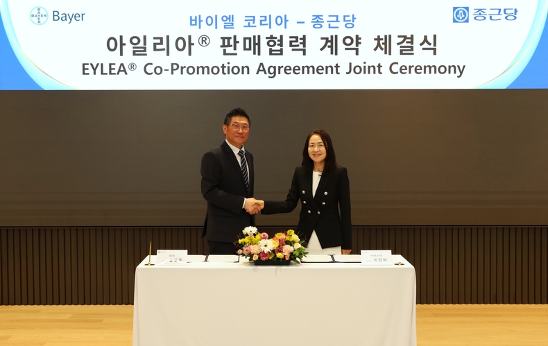 바이엘 코리아 이진아 대표는 “종근당과의 협력을 통해 지난 10년 이상 항-VEGF 시장을 선도해 온 아일리아의 환자 접근성을 한층 강화할 수 있게 됐다”며, “앞으로도 양사의 견고한 파트너십을 기반으로 국내 망막질환 환자와 의료진에게 신뢰할 수 있는 치료 옵션을 보다 원활히 제공하고, 환자들의 삶의 질 향상에 지속적으로 기여하겠다”고 밝혔다.