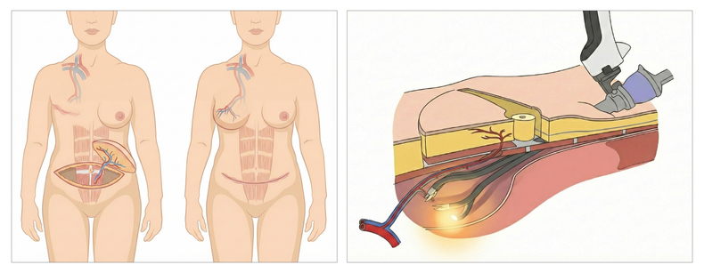 DIEP(Deep Inferior Epigastric Perforator flap)는 유방 전절제술 이후 환자의 복부조직을 이용해 유방을 재건하는 수술로, 기존의 복부조직 이용 유방 재건술과 비교해 떼어낸 부위(공여부)의 조직 손상을 최소화할 수 있어 널리 시행되고 있다. 여기에 로봇 수술을 접목하면 복직근을 덮고 있는 근막의 절개 범위를 3cm 이하로 줄일 수 있어 통증 감소와 빠른 회복을 기대할 수 있다.