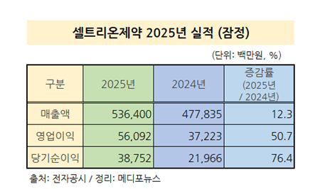 셀트리온제약 관계자는 “지난해는 외형적 성장과 함께 비용 및 원가 구조 개선이 맞물리며 역대 최초 5000억 매출 돌파와 전년 대비 50% 이상 증가한 영업이익을 달성했다”며 “2026년에도 고성장 기조를 유지해 나가면서 핵심 제품의 경쟁력 강화 및 수익성 중심의 안정적인 성장을 이어가겠다”고 말했다.