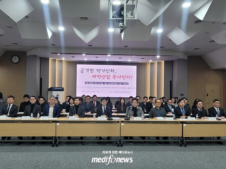 비대위는 특히 최근 국제정세 변화로 산업환경의 불확실성이 커지고 있다는 점도 강조했다. 노 위원장은 “중동 사태로 국제 유가와 환율이 급등하면서 원가 부담이 크게 늘어나고 있다”며 “원료의약품 해외 의존도가 높은 국내 상황에서 이러한 변수는 산업계에 큰 부담으로 작용할 수밖에 없다”고 설명했다.