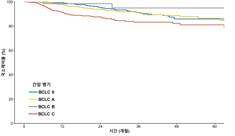 3년 동안으로 기간을 넓혔을 때도 BCLC 0기 91.1%, BCLC A기 91.3%였고, BCLC B기 95%, BCLC C기에서 83.3%로 유지됐다고 보고됐다.
