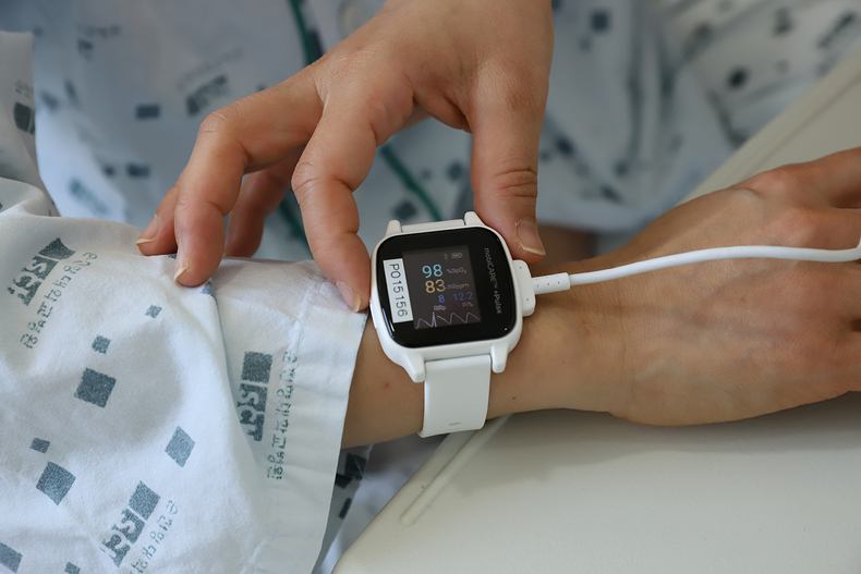 환자 편의성도 크게 높아졌다. 기존 모니터링 시스템은 유선 연결 방식으로 환자의 이동에 제약이 있고 무거운 송신기 착용 부담이 있었던 반면, 본 기기는 가슴 부착형과 손목 착용형으로 구성돼 가볍고 자유로운 이동이 가능하다.