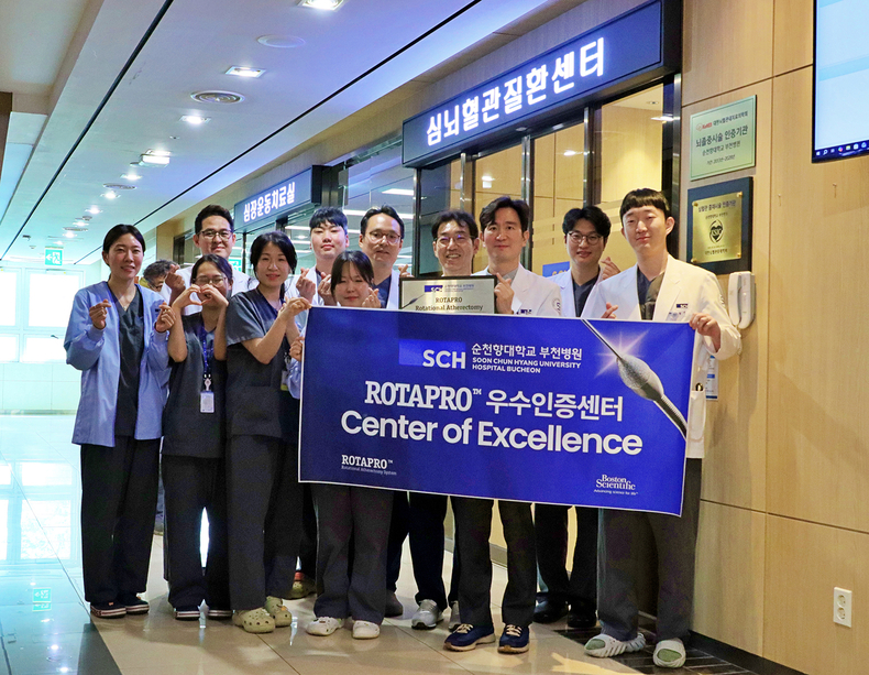 순천향대 부천병원 심뇌혈관질환센터가 글로벌 의료기기 기업 보스톤사이언티픽코리아로부터 ‘ROTAPRO 우수인증센터’으로 지정되어 현판식을 진행했다고 28일 밝혔다. 이번 지정은 로타프로 시스템을 활용한 고난도 관상동맥 중재시술 경험과 숙련도를 인정받은 결과다.