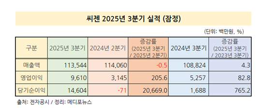 씨젠(Seegene, Inc.)은 7일 공시를 통해 2025년 3분기 매출액 1135억원, 영업이익 96억원을 기록했다고 밝혔다. 전년 동기 대비 매출액은 4.3%, 영업이익은 82.8% 증가해 뚜렷한 실적 개선을 이어갔다. 특히 영업이익은 전기 31억원 대비 197.9% 증가하며 올해 상반기부터 뚜렷한 흑자 기조를 유지하고 있다.
