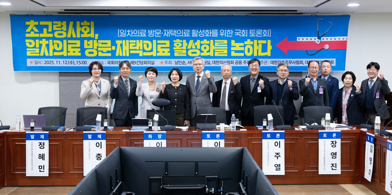 초고령사회 진입과 함께 병원 중심의 의료 체계가 지역사회와 가정 중심의 돌봄 체계로 전환되는 가운데, 그 일환으로 ‘초고령사회, 일차의료 방문·재택의료 활성화를 논하다’라는 주제로 국회 토론회가 11월 12일 국회의원회관에서 열렸다.