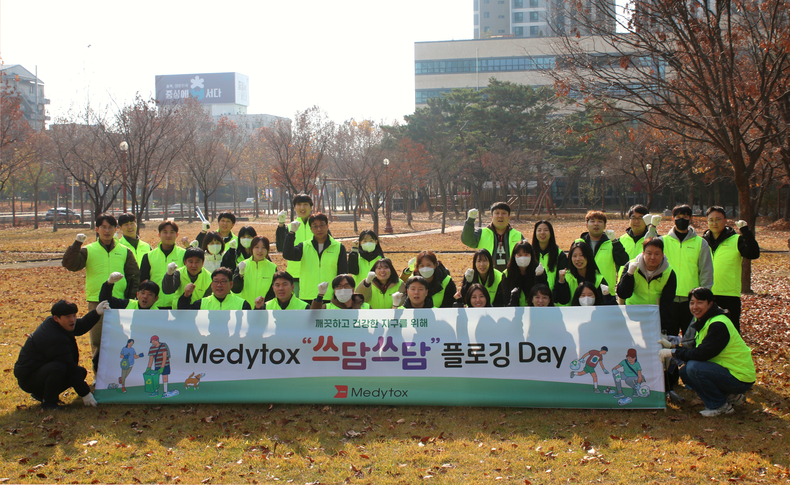 메디톡스(대표 정현호)가 지난 20일과 26일 오창 1공장, 오송 2공장 인근에서 환경캠페인 ‘쓰담쓰담 플로깅 DAY’를 성공적으로 마쳤다고 27일 밝혔다. 플로깅(Plogging)은 ‘줍다’는 뜻의 스웨덴어 ‘플로카 우프’(Plocka upp)와 영어 ‘조깅’(Jogging)의 합성어로 걷거나 뛰며 쓰레기를 수거하는 대표적 친환경 활동이다.