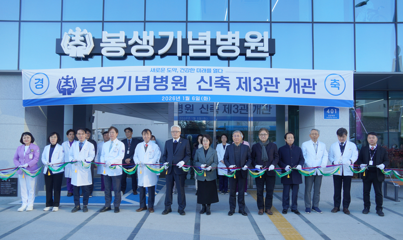 봉생기념병원은 지난 6일 오후 4시 신축 제3관 정문 앞에서 개관식을 열고 ‘팬데믹 대응·AI 의료·연구중심 병원’으로의 도약을 선언했다.