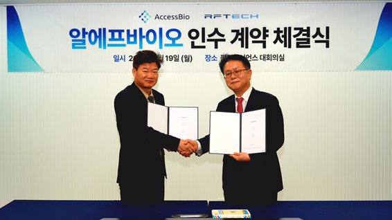 엑세스바이오 (Access Bio, Inc.)는 19일 이사회를 열고 알에프바이오 구주 인수와 제 3자배정 유상증자에 참여해 570억원을 투자하고 80.2% 지분을 취득하는 안건을 승인했다고 밝혔다.
