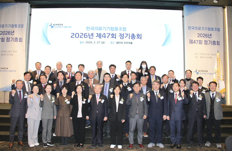 한국의료기기협동조합(이사장 이영규)은 2월 27일 제47회 정기총회를 개최하고 2025년도 사업 성과를 점검하는 한편, 2026년도 사업계획과 예산안을 확정하며 행사를 성황리에 마무리했다.