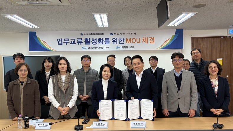 한림제약(대표 김정진)이 아주대학교 약학대학과 업무교류 활성화를 위한 산학협력 업무협약(MOU)을 지난 5일 체결했다고 밝혔다.